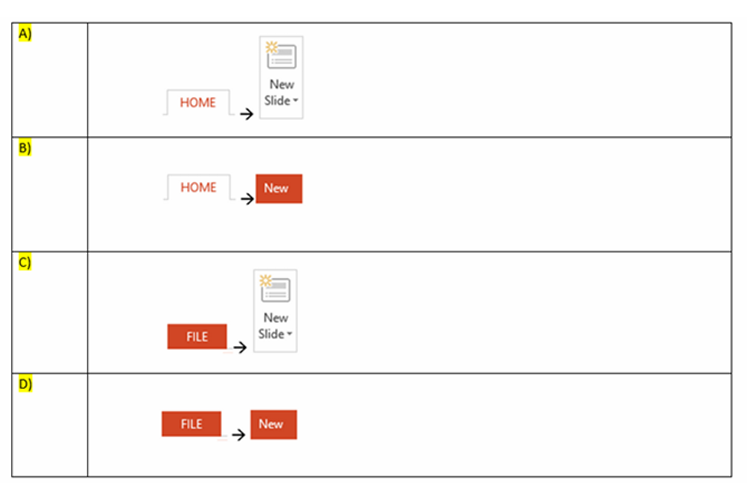 Q1. In your current presentation, you would like to insert a new slide in your current assessment. Which of the following methods will allow you insert a new slide?