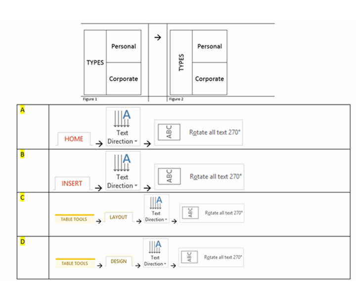 Q10. How do to you change the orientation of the word “”TYPES”” as shown in Figure 1 to what is depicted in Figure 2?