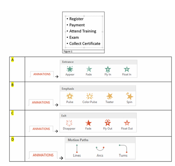 Q12. You want to animate the bulleted points in Figure 1. How do you apply animation effect, so that each bulleted point will appear one by one during a Slide Show?
