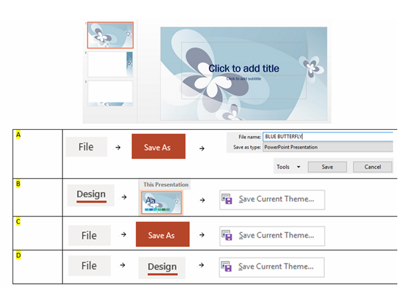 Q20. How do save this Blue Butterfly design, so that you can reuse in your other presentations?