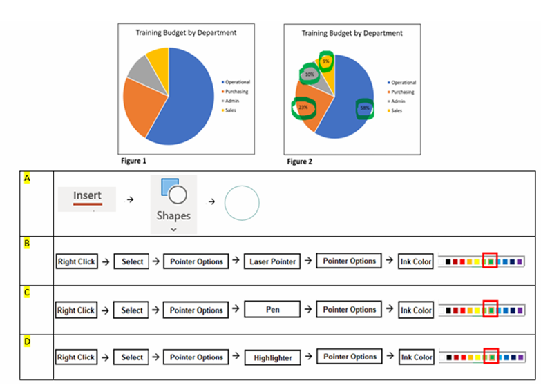 Q23. The slide show below is showing of the “Training Budget by Department”. How do you add the green circles as reflected in the picture below?