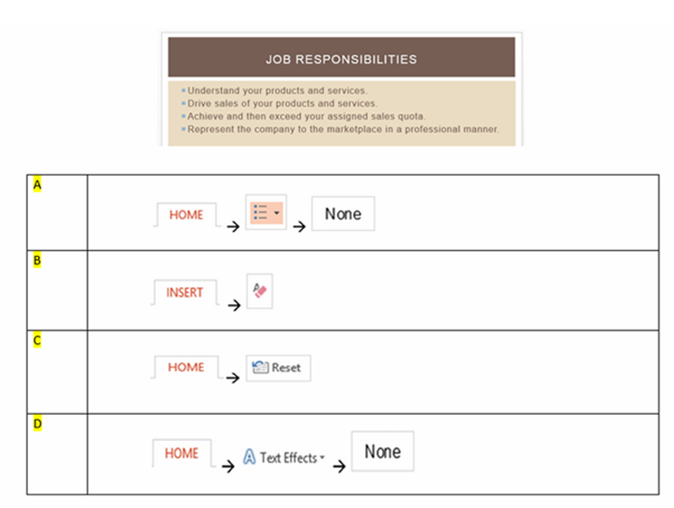 Q8. In the slide below, you would like to discontinue all bullets. How do you do this?